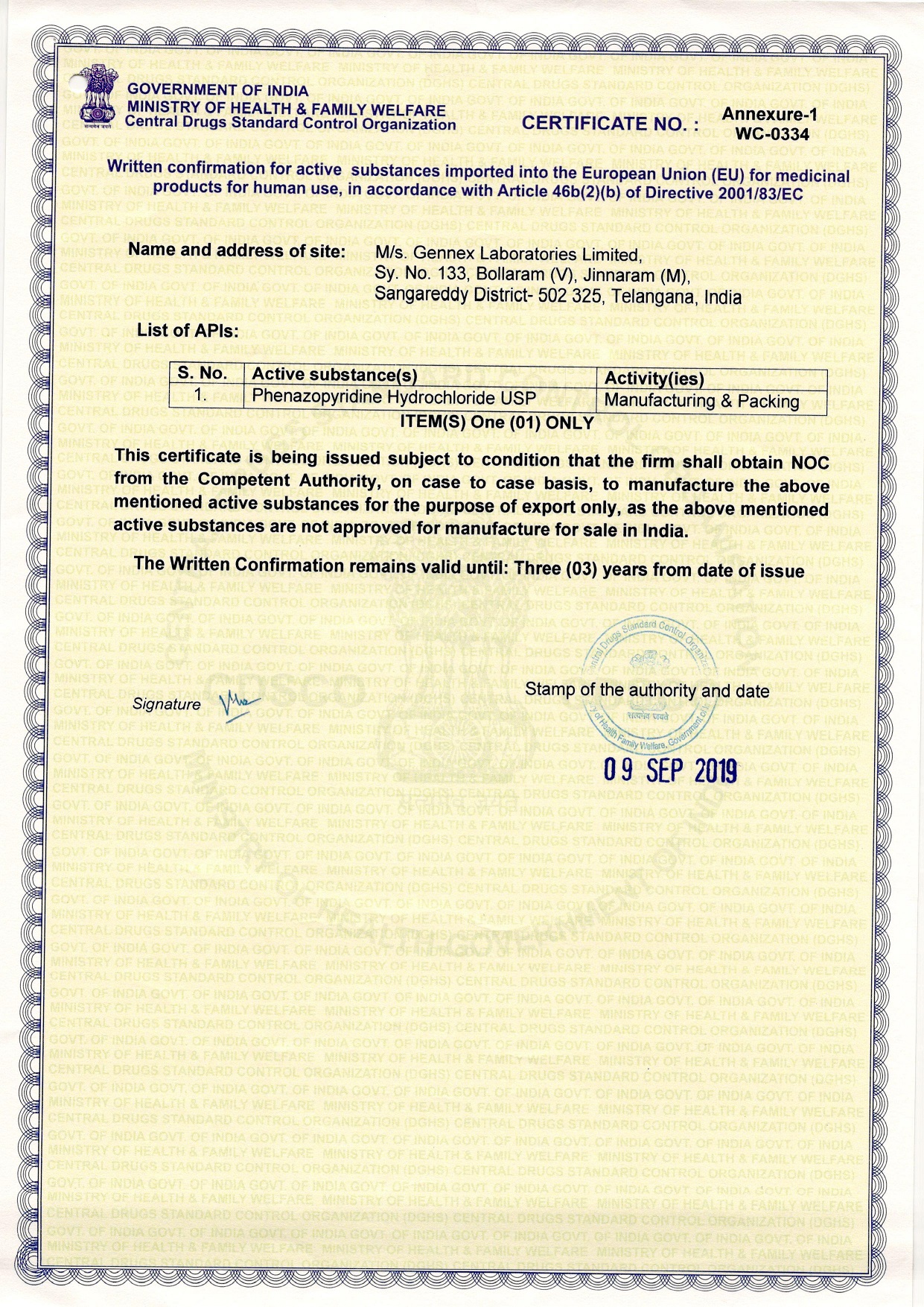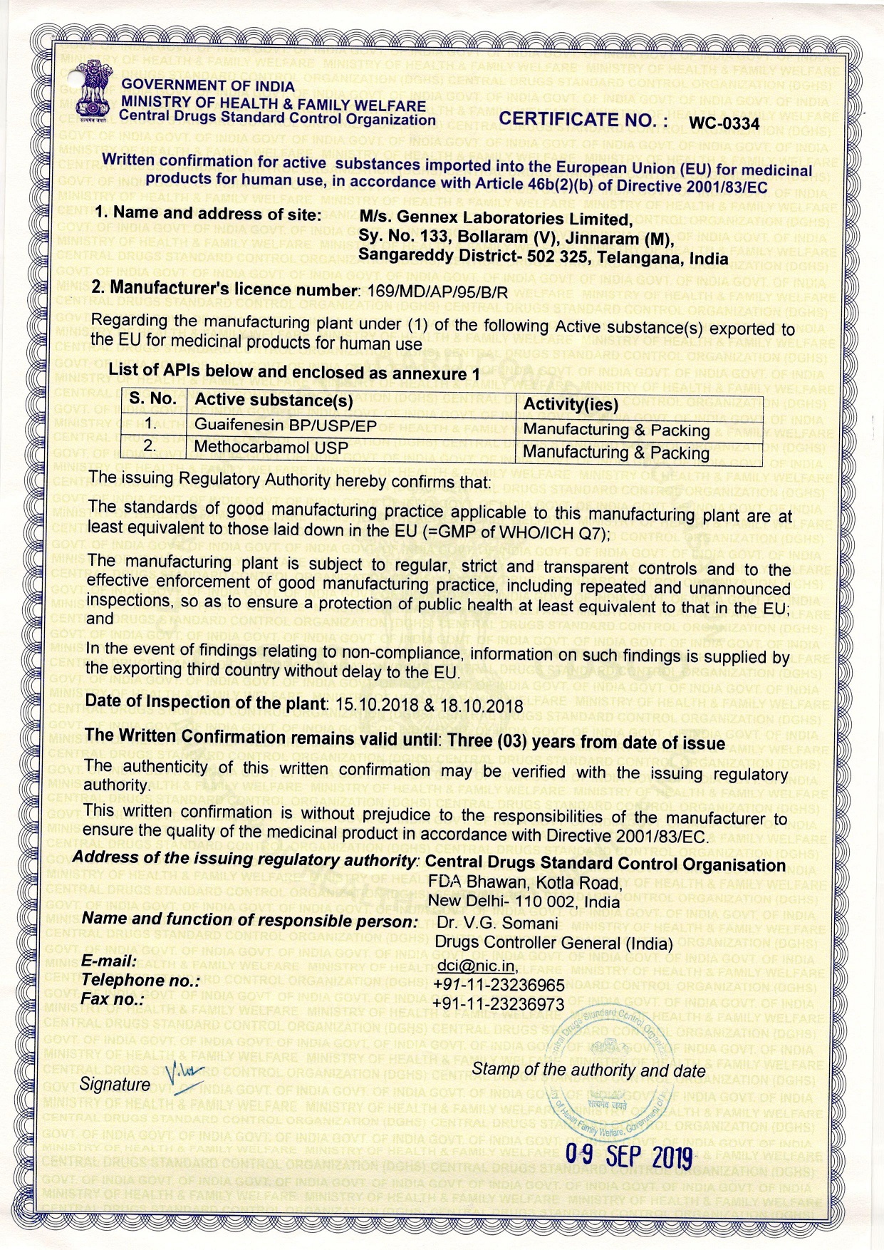 The unit is GMP certified by the State Drug Control Authority and the manufacturing facilities are certified ISO 9001:2015, ISO 14001:2015 and ISO 45001:2008.
